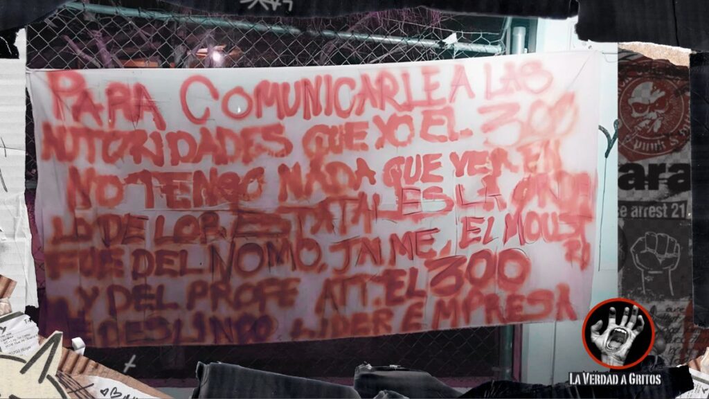 “PARA COMUNICARLE A LAS AUTORIDADES QUE YO EL 300 NO TENGO NADA QUE VER EN LO DE LOS ESTATALES LA ORDEN FUE DEL NOMO, JAIME, MOUSTRO Y DEL PROFE ATT. EL 300 ME DESLINDO LÍDER EMPRESA”.